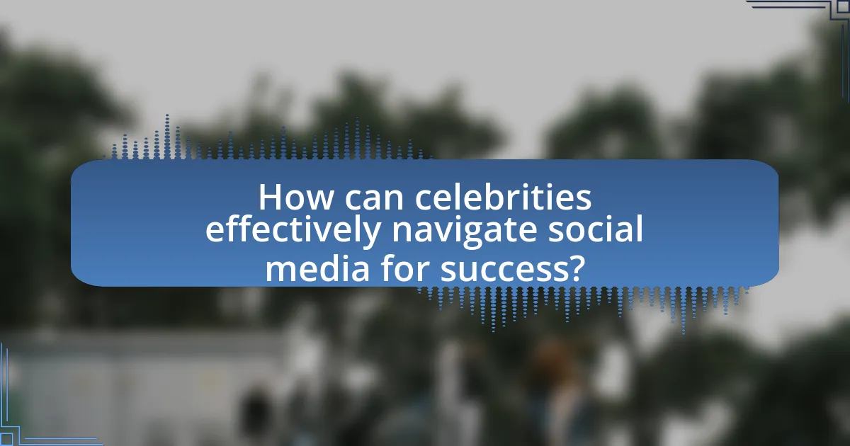 Celebrities can effectively navigate social media for success by strategically engaging with their audience, maintaining authenticity, and leveraging analytics to optimize content. Engaging with followers through regular interactions, such as responding to comments and participating in live sessions, fosters a sense of community and loyalty. Authenticity is crucial; studies show that 86% of consumers value transparency from brands and public figures, which translates to increased trust and engagement. Additionally, utilizing analytics tools allows celebrities to track performance metrics, understand audience preferences, and tailor their content accordingly, leading to higher engagement rates and follower growth.
